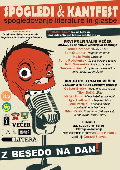 Založba Litera in Kantfest letos že drugič skupaj organizirata tridnevni literarno-glasbeni festival SPOGLEDI, ki je tokrat namenjen PROZNEMU SLAMU, oz. lovu na Literino nagrado za najboljšo kratko zgodbo v živo!